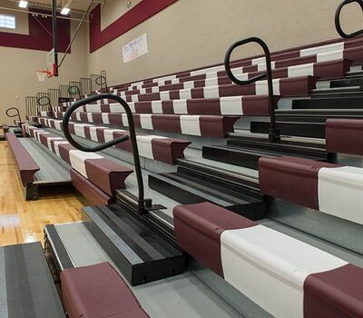 The gymnasium for the American Leadership Academy is installed with model 4500 telescopic bleachers from Irwin Seating Company. The system is a 10 row, 80' system with 10" rise and 24" row spacing for a capacity of just under 500 spectators. The stands feature self-storing end rails, Smart Rails, panelam decking, IDS power and two colors of Infinity Seat Modules for school identification.