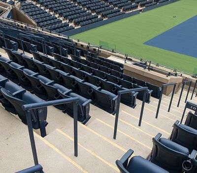 The USTA's Arthur Ashe Stadium opened in 1997 with 23,000+ Patriot chairs from Irwin Seating Company. In 2017 the stadium was renovated and 23,000+ new Patriot chairs were installed to replace the ones that had been in service for 20 years. Most of the seating is model 30.52.00.30, a comfortable, ergonomic-designed chair. Suites are provided with the 30.12.8.8 Patriot VIP and the press area is equipped with folding writing tablets.