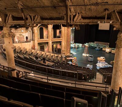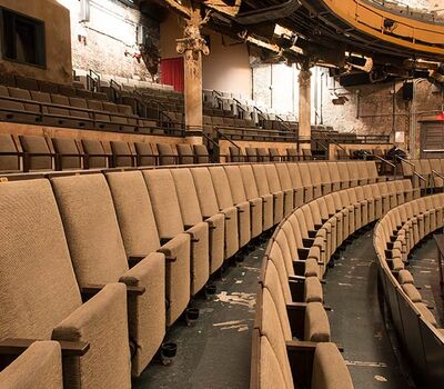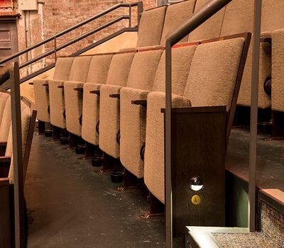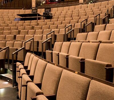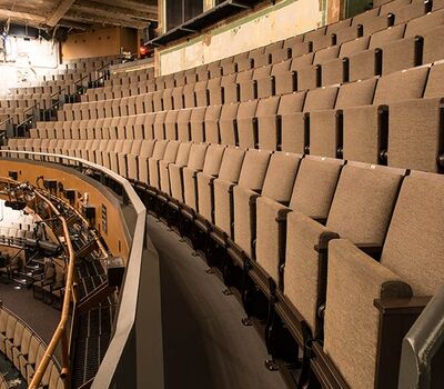 The Harvey is owned and operated by the prestigious Brooklyn Academy of Music. The theatre, originally known as the Majestic, opened in 1904. By the 1960s the theatre was closed and sat empty for a couple of decades before it was renovated and reopened in the 1980s with an award-winning, aged European design. Recently Irwin Seating provided new custom seating for the 800 seat Harvey. The chairs are modified Allegro chairs with fully upholstered gravity lift seats. To help improve sightlines, the balcony chairs are taller than a normal chair and feature an innovative footrest mechanism for comfort. These chairs are upholstered in Maharam Steady Cryton Summit fabric and finished with a custom wood stain and powder coat (paint). The seating also features a discreet center standard cupholder.
