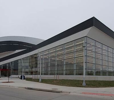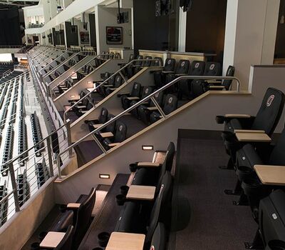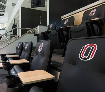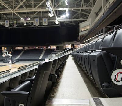University of Omaha's Baxter Arena is a 7,500 seat facility that serves as a home for the University's hockey, men’s and women’s basketball and volleyball teams and campus recreation. In addition, the arena provides the community a venue for concerts, civic events, youth hockey, figure skating and curling. General and club seating areas are installed with 90.12.00.4 Citation chairs while the suites feature model 51.12.10.4 Marquee with intermediate drink tables. One end zone is supplied with model 4500 telescopic bleachers with Infinity Seat Modules that can be closed for certain events. All Citation and Marquee chairs are upholstered with CMI vinyl fabric with the club seating provided with 5-1/4" screen printed logos. Suites feature embroidered logos.
