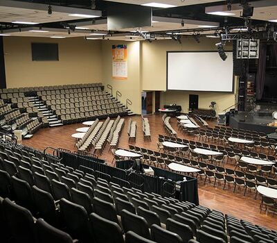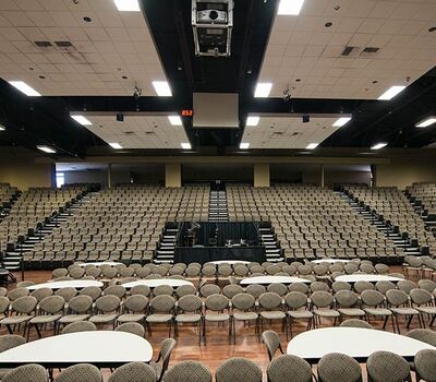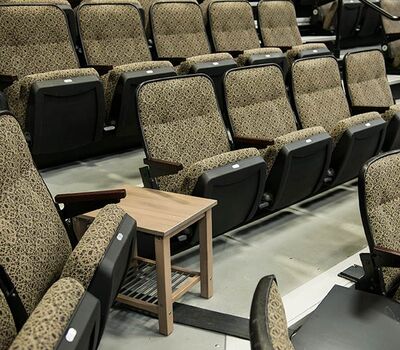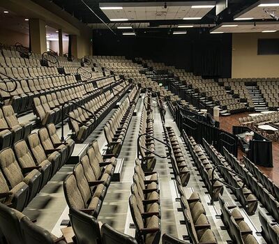 Bayside's Blue Oaks Campus is installed with more than 1,500 nose-mount Marquee chairs on tapered, model 5000 telescopic platforms. In addition to the nose-mount chairs, there are a few rows of Model 51.12.00.4 fixed Marquee chairs for a consistent look. The platform system is designed with vomitories for access in and out of the space. The backs and seats are upholstered with a COM fabric.