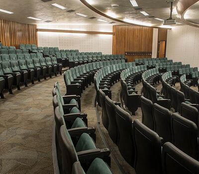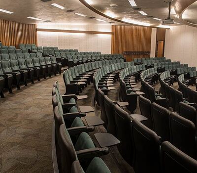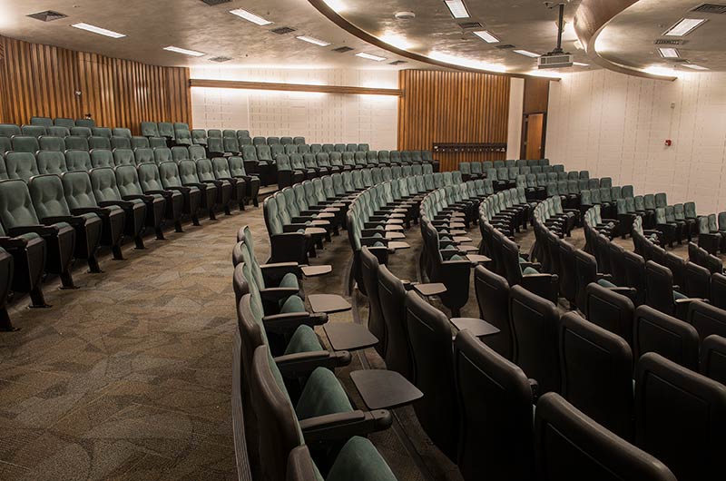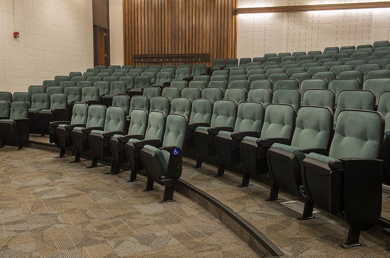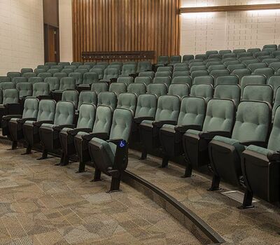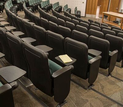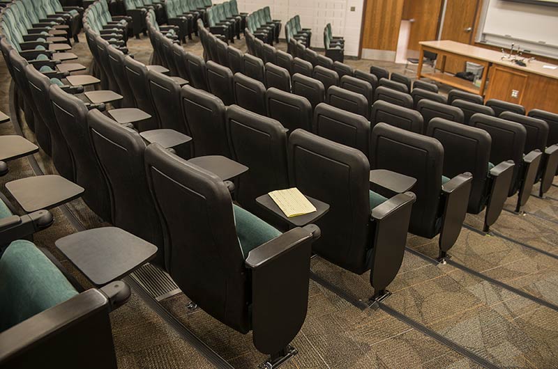 A 2015 renovation to this building included the re-seat of 16 lecture halls with Model 51.12.66.4 Marquee. Just over 1,900 chairs were provided in black plastic and powder coat, No. 2 ebony on maple stain and Designtex Samba Balsam. Seating is equipped with 83 square inch writing tablets.