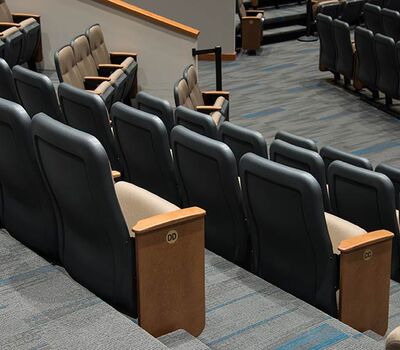 Model 51.12.66.4 Marquee with veneer surfaced aisle panel and comfort curved wood armrests