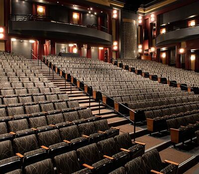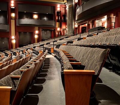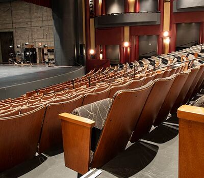The Irving Fine Arts Center is a 10 acre, comprehensive arts center with two theatres and multiple gallery spaces to showcase cultural treasures. Carpenter Hall is a 700 seat performing arts theatre with great sightlines. The seating installed is Irwin Seating model 8.6.86.12 Meteor with cast-iron standards and the No. 6 steel seat with a loge cushion. The backs are surfaced with Nevamar Sovereign Cherry laminate, Maple armrests and aisle panels are finished with No. 17 India teak stain and the fabric used for the backs and seats is Momentum Drift Incense.