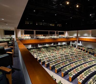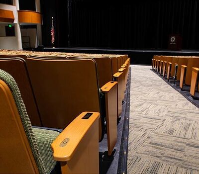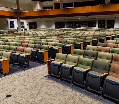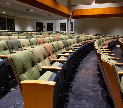 A complete renovation of the Collegiate School's Hershey Center for the Arts Oates Theatre in 2018 included 582 chairs from Irwin Seating Company. The model selected for this beautiful theatre is the 6.12.86.4 Century PAC chair. These chairs were provided with comfort curved solid hardwood arms, foot shrouds, full-fold No. 12 seats with a suspension cushion assembly and donor plates. Plastic and powder coat (paint) is Charcoal Grey, the maple wood was stained with No. 27 Classic Golden. Four Absecon Mills Shire fabric colors were used; Acorn, Limelight, Key Lime and Dill.