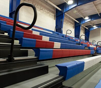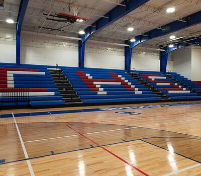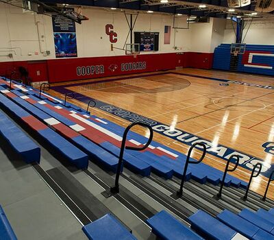 Cooper High School replaced its gym bleachers in 2017 with telescoping stands with Infinity Seat Modules manufactured by Irwin Seating Company. This project included 14 rows with a rise of 10", Smart Rails, recoverable wheelchair spaces and three colors of seat modules.