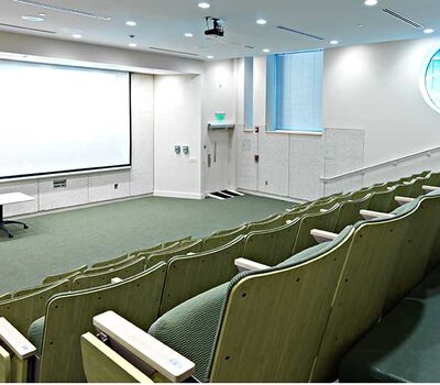 Irwin Seating provided model 8.12.86.4 Meteor chairs for two rooms at this school in Connecticut. The theatre has 285 chairs in a custom Maharam fabric, and the large group instruction room is installed with 79 chairs in another Maharam fabric.