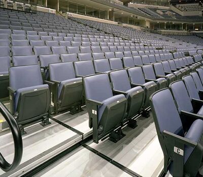 This multi-purpose arena is home of Memphis Grizzlies & University of Memphis basketball teams. The arena has a capacity of 18,000+. Irwin Seating Company provided both the fixed stadium seating and telescopic platforms. The telescopic units feature forward-fold Citation chairs and are provided in a variety of wall-attached and portable units that allow for a variety of event configurations. Fixed seating in the general and club sections is 4.12.18.8 Citation with a custom logo aisle panel. Suites are installed with model no. 51.12.66.8 Marquee.
