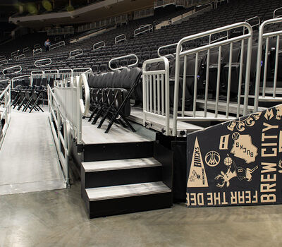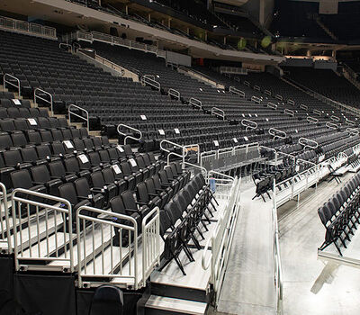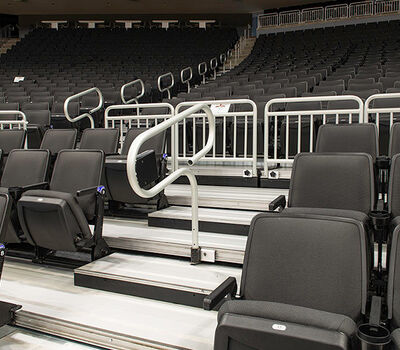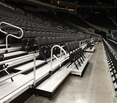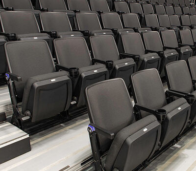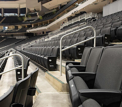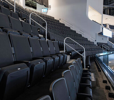 Fiserv Forum is home to the Milwaukee Bucks and Marquette Golden Eagles. This beautiful, spacious arena also hosts a variety of other events like concerts, dirt shows and even the 2020 Democratic National Convention. To assist with the multitude of floor configurations needed for the various events Irwin Seating Company has provided a wide range of telescopic solutions. This includes four-row, dual-rise systems in both end zones, standard recessed telescopic platforms and a variety of portable solutions. The majority of the telescopic equipment is supplied with Prestige nose-mount or forward-fold chairs that provide enhanced comfort and continuity with the fixed seating. Differentiation between the various ticket levels is done with three chair models; Citation (general), Marquee (club) and Signature (suite). To provide great sightlines and bring the fans closer to action the risers in the upper bowl were constructed with a generous height; to provide a sense of security and help with comfort, high-back Citation chairs were used in these areas.