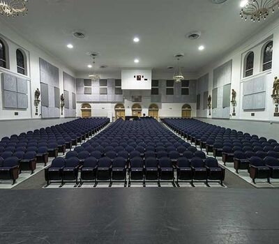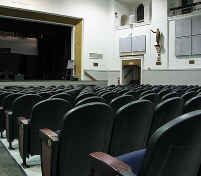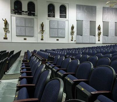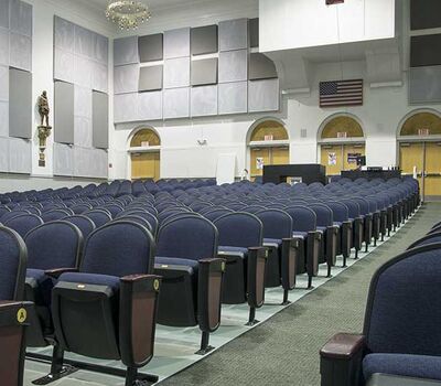 Henry B. Plant High School opened in 1926. A recent renovation to the auditorium included 642 model 91.12.10.4 Millennium chairs from Irwin Seating Company. The seating is upholstered with Absecon Mills Shire dark night fabric and finished with black plastic & powder coat, 18 red teak on red oak for the armrests and Gentry Oak laminate used for the aisle panels.