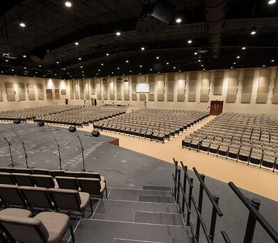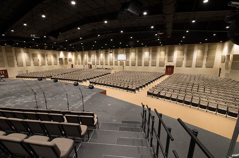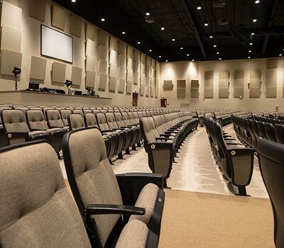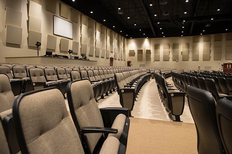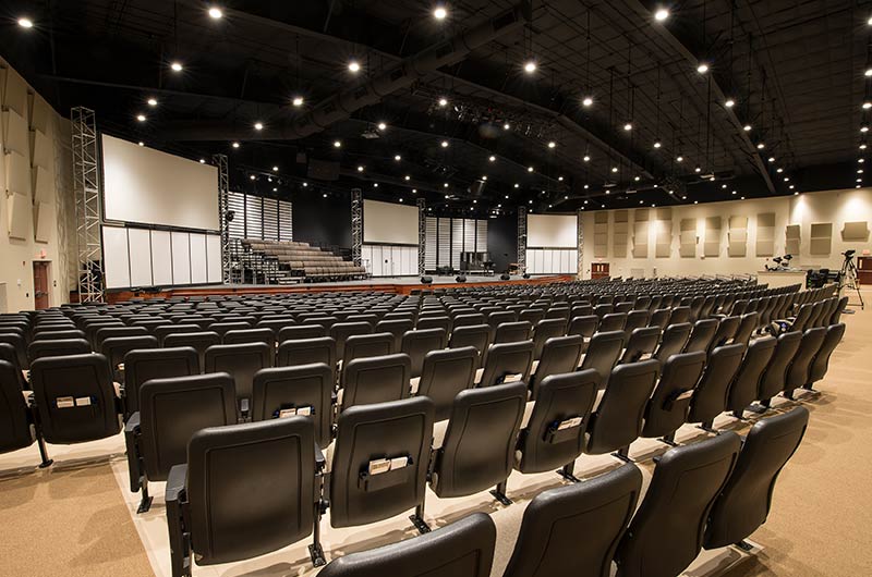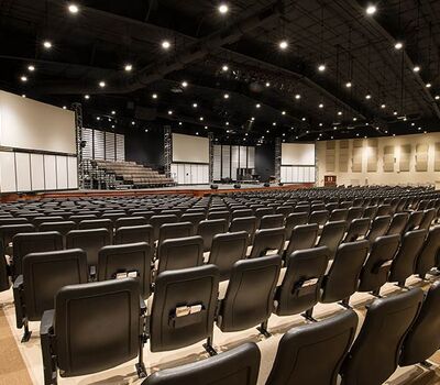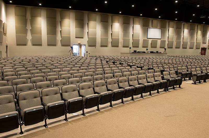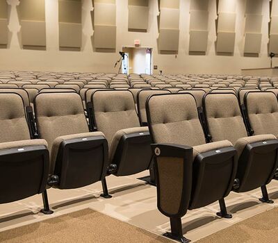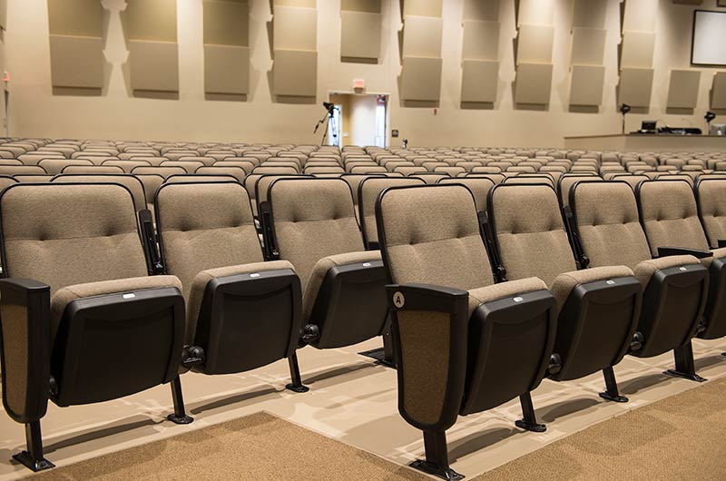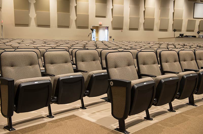With just under 1,000 model 51.12.10.4 Marquee chairs, this beautiful facility in Northern Alabama helps people experience life. The seating features flip-up center armrests near the aisle ends, upholstered aisle insert panels and comfort-curved polymer armrests. The chairs are upholstered with Absecon Mills Shire Woodstock fabric.