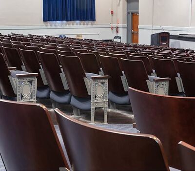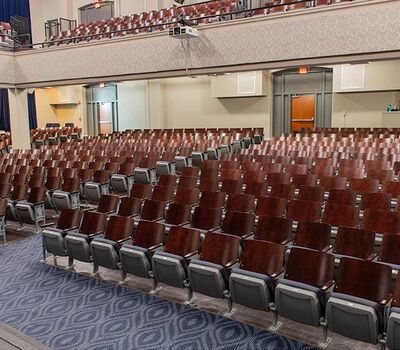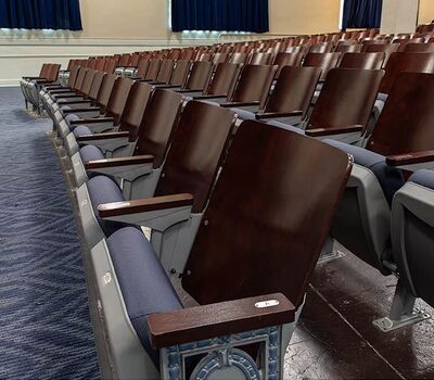 Located in downtown Nashville, Hume-Fogg's intent is "that every Hume-Fogg student graduates high school and enters college with a love of learning, a knowledge of self, and a respect for others and ideas, resulting in academic success, personal fulfilment and in meaningful and sustained contributions to society." In 2017 Irwin Seating Company manufactured just over 1,100 model 1.12.141.4 Crusader chairs to reseat the auditorium. This chair provides a great mix of traditional, period styling with new comforts like the padded, upholstered seat. Maple backs and armrests are finished in No. 22 Classic Rosewood, plastics and powder coat (paint) is Cadet Grey and the fabric used is Momentum, Tradition, Distance.