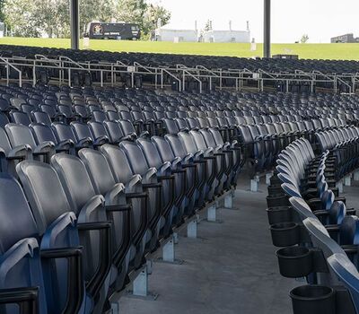 With a total capacity of 17,500 and premium seating under the canopy, Lakeview Amphitheater is a great setting for a concert! Two fixed seating models from Irwin Seating Company were installed: