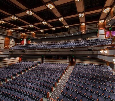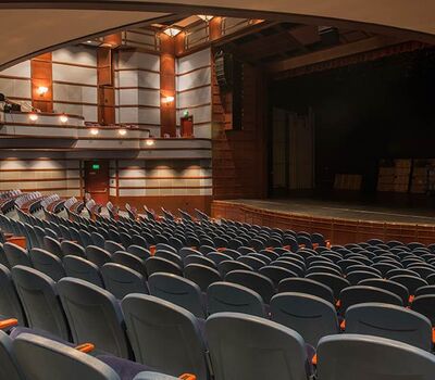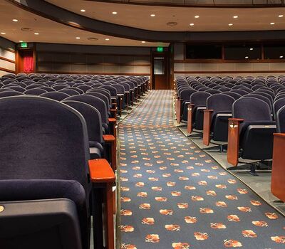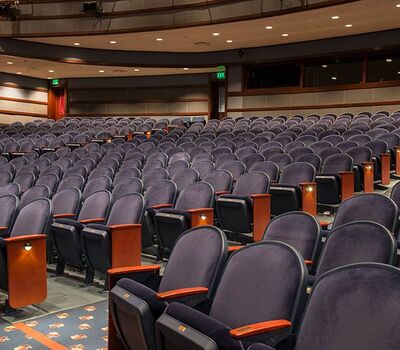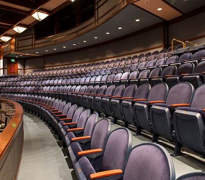 This comfortable venue in beautiful Walnut Creek, California has two theatres. One is an intimate 289 theatre the other pictured here seats 740. Both theatres are installed with Model 91.12.56.4 Millennium. The seating is upholstered in J.B. Martin Porto Lapis velour and wood components are stained with No. 29 Cherry, plastic and powder coat is Blue Dusk.