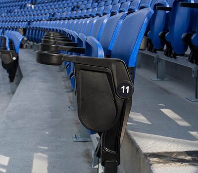 In 2016, the stadium added suites and club seating at the field level. The suites are installed with model 72.12.56.4 Signature, upholstered in CMI Illusions Smoke vinyl. The 5,000+ outdoor club seating features Irwin Seating's model 115.115.70.40 Solara chairs.