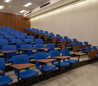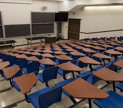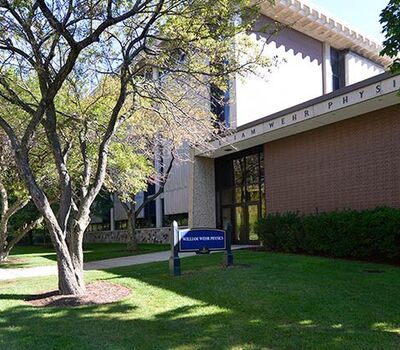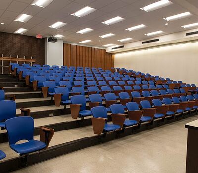 As the name implies the Wehr Physics Building houses Marquette's physics department. The building was constructed in 1973. Recent renovations to a number of lecture halls include the installation of new model no. 6.71 folding tablet armchairs. The seating was installed with riser mounted standards finished in black powder coat, cobalt blue seat shells and folding writing tablets surfaced in Nevamar Soveriegn Cherry.