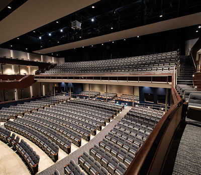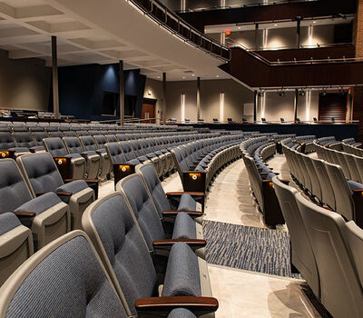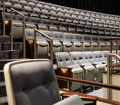 McFarland High School has a student population of approximately 700 students and works to create an atmosphere that "allow students and staff to build relationships that establish a family-friendly environment." The school has been undergoing a major renovation which includes a new 841 seat performing arts center. Installed with model 90.12.86.4 Citation that features tufted back upholstery, concealed LED aisle lights and comfort curved solid Maple armrests. The chairs are finished in Cadet Grey plastic and powder coat (paint) and No. 24 Classic Walnut with the back and seat upholstered with Absecon Mills, Shire, Tuscan Blue.