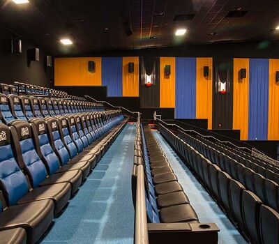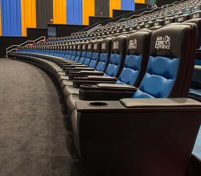 MJR Theatre's Grand 16 features an EPIC auditorium with a four-story tall screen. To ensure an epic experience the first row of seating is 30 feet from the screen to provide great viewing for everyone in the theatre. To further enhance the experience, the EPIC theatre is installed model 72.84.83.84 Signature Luxury Club Seating. Other theatres in the complex are installed with model 71.12.2.2 Signature Rocker.
