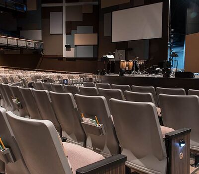 Northview Church's Carmel site is installed with 2,000 model 4.12.56.8 Citation chairs. The seating features cantilevered aisle end standards, LED aisle lights, under-seat book boxes and envelope holders. Backs and seats are upholstered with a COM fabric with the backs in two different fabrics from the seats. Aisle standards are surfaced with Nevamar Tendu laminate.