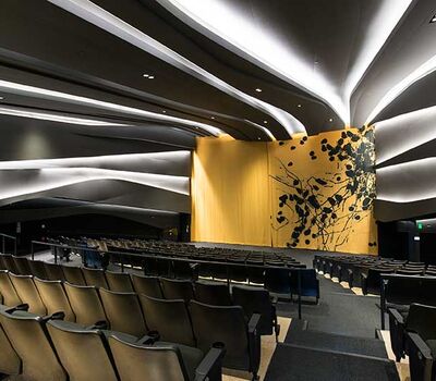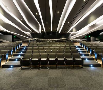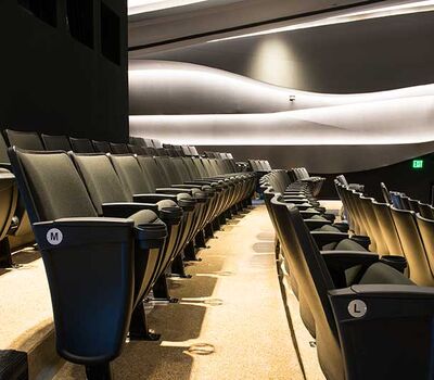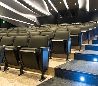 Recognized for its sustainability, the Morphosis Architects designed building includes a 296 chair state of the art theatre. These Citation chairs are upholstered with Momentum Origin Jet fabric and include cupholder armrests, row letter and seat number plates.