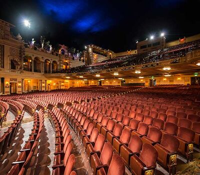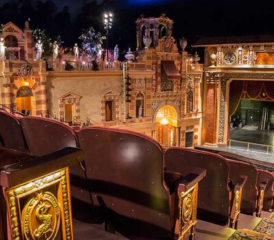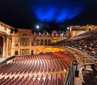 After millions of dollars and years of restoration work, the theatre reopened with its magnificent 15th-century Italian courtyard and gardens, arched surroundings, columns, decorative moldings and blue-domed ceiling.