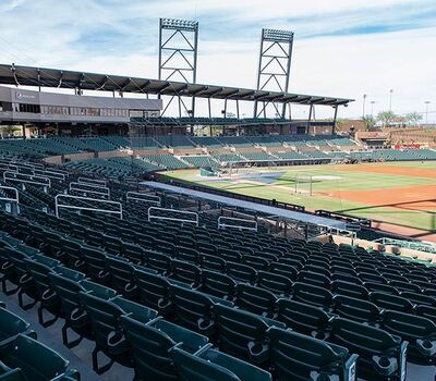 Salt River Fields his the spring training home of the Arizona Diamondbacks and Colorado Rockies and is installed with American Stadium Chair model 507.507.202.202 now manufactured by Irwin Seating Company. This project included a custom logo plate, redirected chairs and rear mount cup holder.