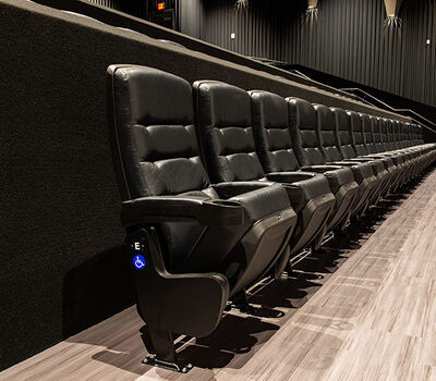 Celebration Cinema at Studio Park is part of a luxurious complex in downtown Grand Rapids with nine screens. Each auditorium was installed with a mix of Spectrum Eclipse ZG4 Recliners and model 72.12.2.2 Signature Rockers to provide different seating options to customers. The recliners feature large swivel tables and heated backs to enhance the experience. To assist with cleaning and set up between shows each auditorium is equipped with remote open/close for the Spectrum Recliners. The rockers were provided with sculpted loge seats and flip-up cupholder armrests.