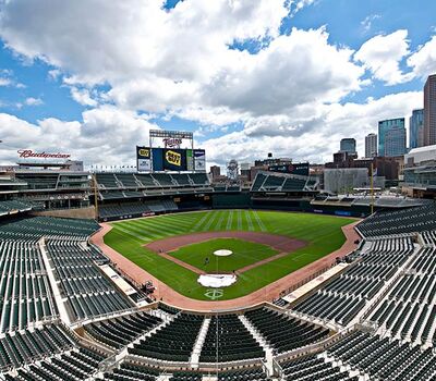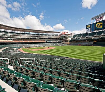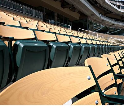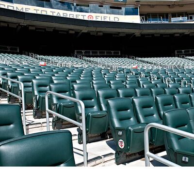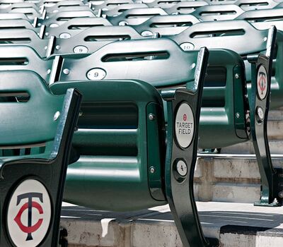 Target Field, home of the Minnesota Twins is installed with multiple models from Irwin Seating Company. Chairs provided include models 39.45.35.35 Senator, 39.12.35.35 Senator, 71.12.18.12 Signature, 239.12.35.35 Senator, a faux wood slat back chair.