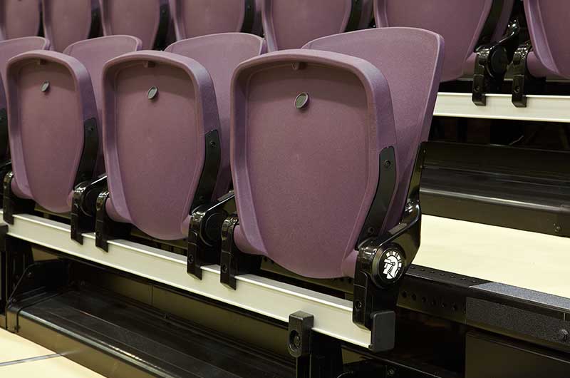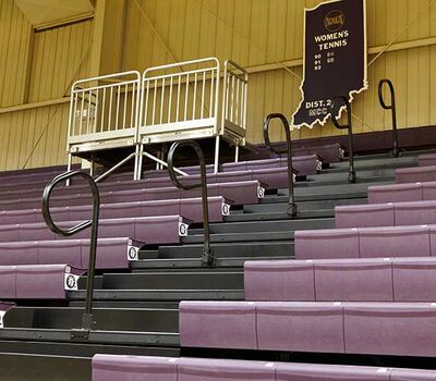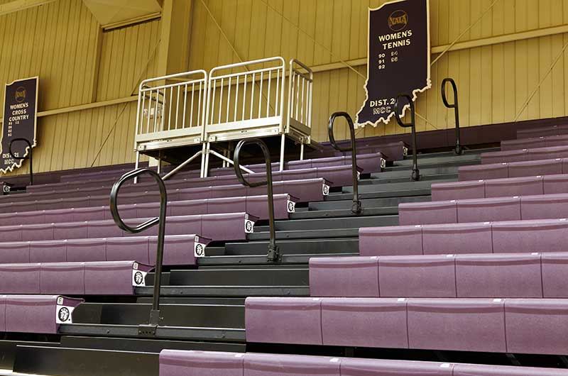 Taylor University's Odle Arena opened in 1975. In 2012 the arena was renovated and new seating was installed. All seating is on model 4500 telescopic bleachers. Combining Infinity Seat Modules and Integra chairs help to create a VIP area. The bleachers are provided with Smart Rails that store and deploy with a quick lift and turn without the need for tools or a storage room.