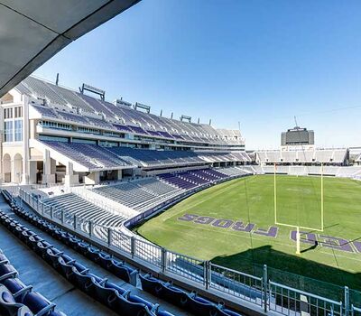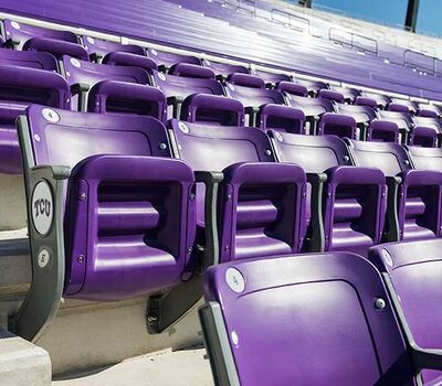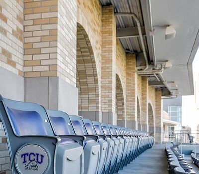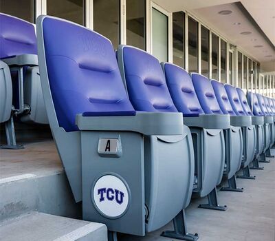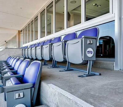 A two-year renovation and expansion project at Texas Christian University's Amon Carter Stadium finished up in 2012. The project includes chairback stadium seating in club and suite areas. Included in the project is model 130.45.35.35 Centurion, 131.12.35.35 Centurion with the No. 12 seat, 47.12.18.12 Millennium and 71.12.18.12 Signature chairs. Aisle end panels are provided with screen printed logo plates.