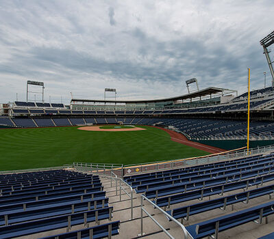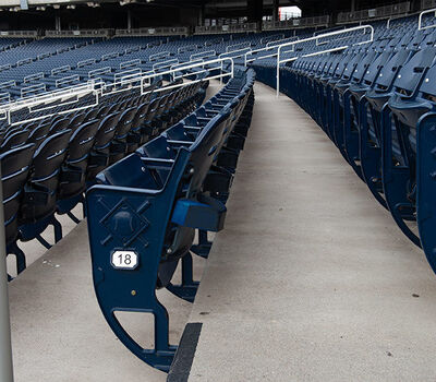 TD Ameritrade Park is home of the College World Series and the Creighton Blue Jays. The park has a capacity of 24,000 and the majority of the seating is model 507.507.202.202 American Stadium chairs. These chairs feature rear cupholders, number and letter plates and aisle end standards with an integral cast logo.