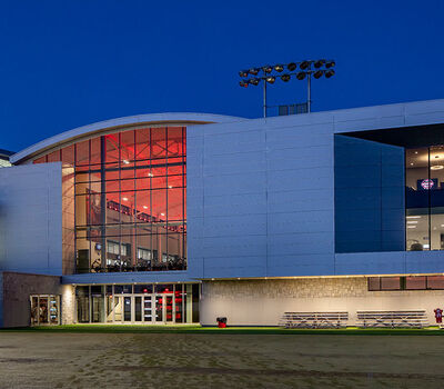 The Butts-Mehre Heritage Hall is named for Bulldog coaches Wallace Butts and Harry Mehre. This impressive facility serves as "Nerve Center" for the UGA Athletic Association and contains historical displays for the University's storied past. In addition to practice fields, the complex includes offices, weight room, sports medicine training rooms, and team / position meeting rooms.