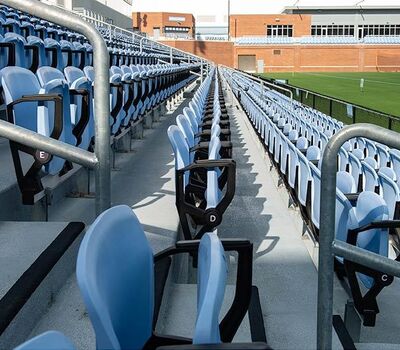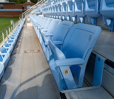 This state-of-the-art stadium includes 1,115 model 30.52.00.30 Patriot chairs installed on the aluminum bleachers and 2,934 beam mount Solara chairs installed on the concrete risers. Both models were provided in a custom Carolina Blue.
