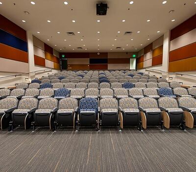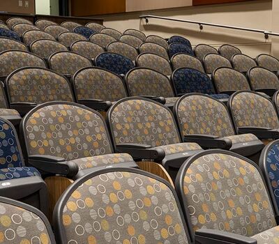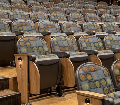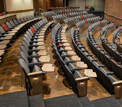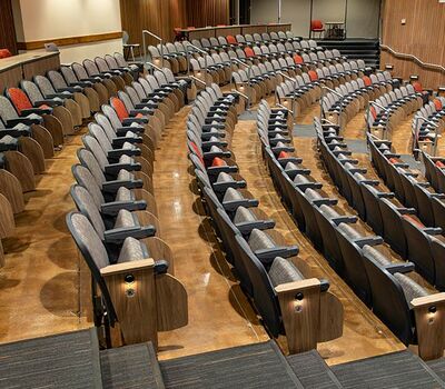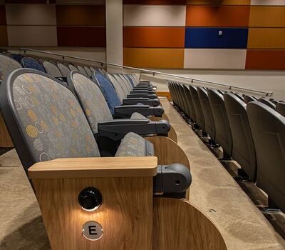 Over the last few years, Irwin Seating Company has supplied seating for a number of rooms at the University of Texas-San Antonio. Chair model selected by the University is 91.12.86.4 Millennium with 151 sq. in. writing tablets, Focal LED aisle lights and 120V / USB charging stations. Color selections include Charcoal Grey plastic and powder coat (paint), Nevamar Dry Creek Plum Tree laminate for aisle end panels/arms and writing tablets. The Flawn Hall rooms are upholstered with Maharam Slant Quarry & Fiery fabrics, chairs in the Engineering Hall room are upholstered with Maharam Amuse Alloy and Admiral and the McKinney Hall seating was upholstered with Momentum Catalogue Tidal and Bark fabrics.