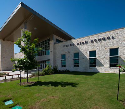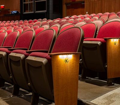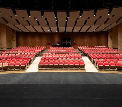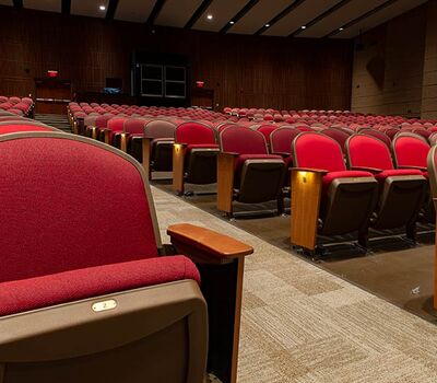 Weiss High School opened in the fall of 2017 with a beautiful auditorium installed with 781 model 91.12.86.4 Millennium chairs from Irwin Seating Company. These chairs were 100% manufactured in the United States and feature comfort curved solid hardwood arms, veneer surfaced aisle panels, concealed LED aisle lights and row letter/seat number plates. The seating was finished with Bronze plastic and powder coat (paint), No. 17 India Teak on Maple and upholstered in three shades of red Absecon Mills Shire fabric for a stunning effect.