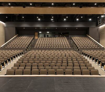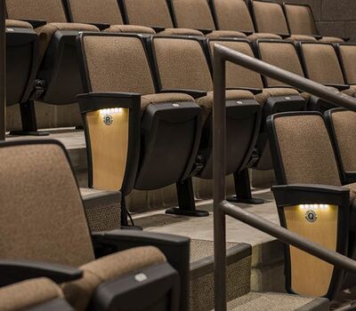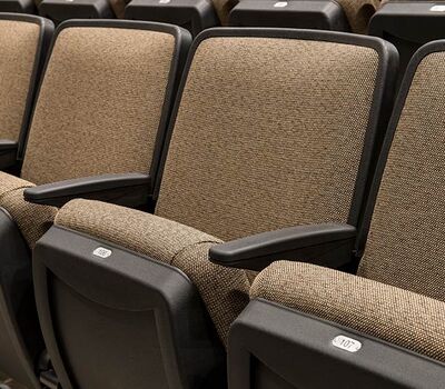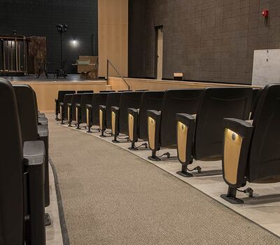 Williston High School opened in the Fall of 2016 with a 635 seat auditorium. Seating installed is our model 90.12.10.4 Citation. The theater chairs are provided with concealed LED aisle lights, row letter and seat number plates, rubber foot shrouds and comfort-curved polymer armrests. The No. 10 aisle insert panels are surfaced with Nevamar Clear Maple laminate and the backs and seats are upholstered in Absecon Mills Shire Hopsack.