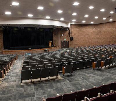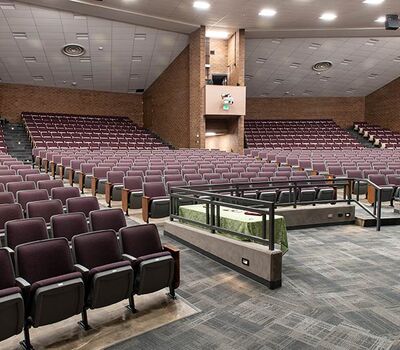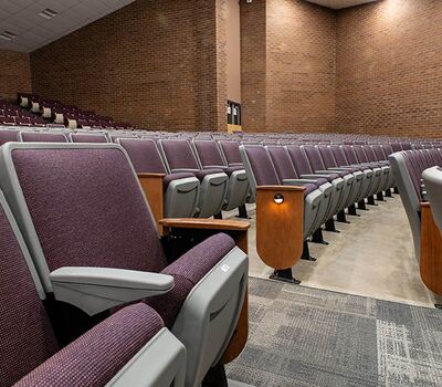 A 2017 expansion of Windsor High School included the partial reseat of the auditorium with 578 model 90.12.66.4 Citation chairs. These chairs were supplied with veneer surfaced aisle panels, solid hardwood aisle armrests, comfort curved polymer center arms, Beacon LED aisle lights and row letter/seat number plates. These chairs were finished with Cadet Grey plastic, Black powder coat (paint), No. 17 Teak on Red Oak, Absecon Mills Shire Country fabric.