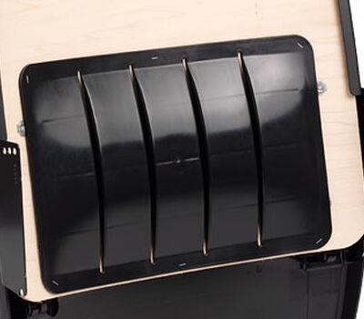 - Rear panel is a one-piece injection-molded HDPE (polyethylene)
