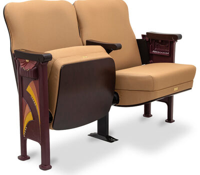 - Scrolled hardwood armrests