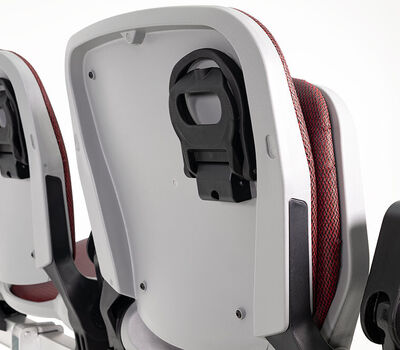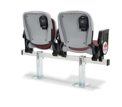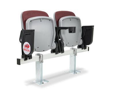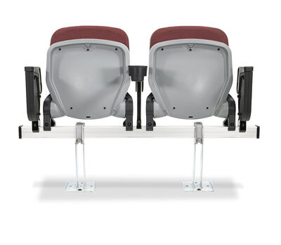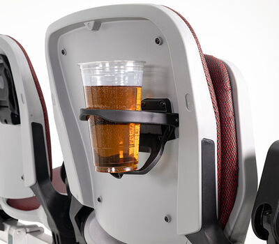 Centura is shown here with premium options that include a padded seat and back, rail mount aisle panel with screen printed logo plates, cupholder armrests for front row locations and our innovative rear mount flip-up cupholders. The seats and backs are upholstered in Diamondback fabric.